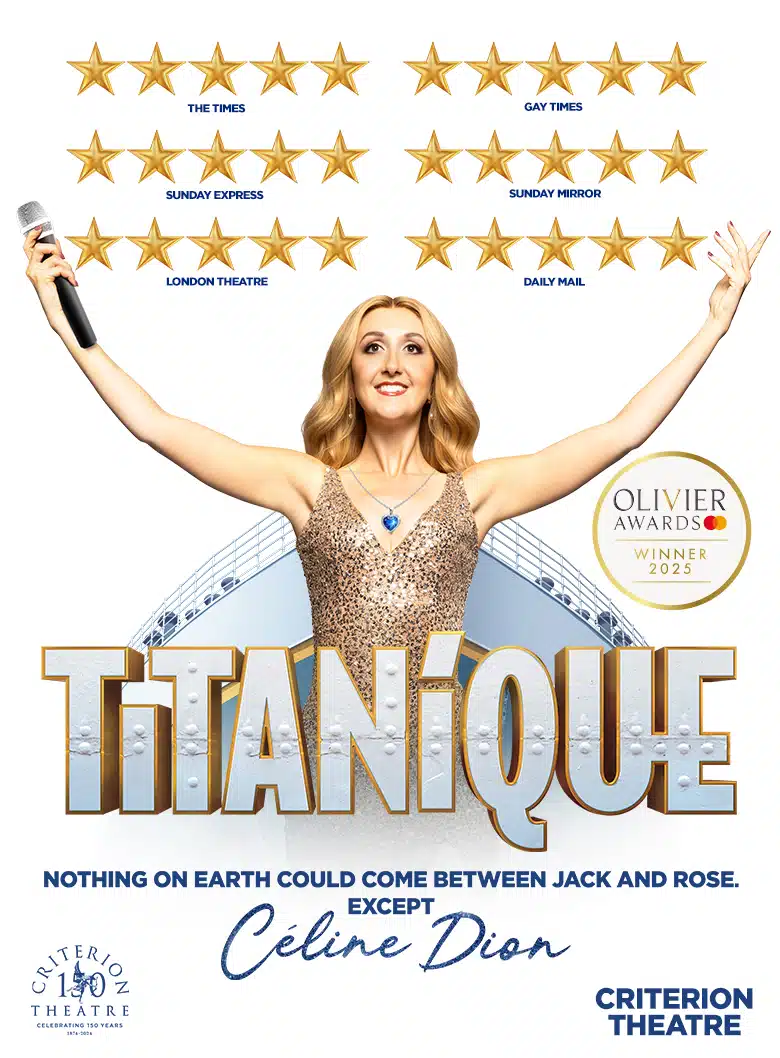 When the music of Céline Dion makes sweet Canadian love with the eleven-time Oscar®-winning film Titanic, you get Titaníque, the two-time Olivier award-winning splash hit that turns one of the greatest love stories of all time into a hysterical musical fantasia.
